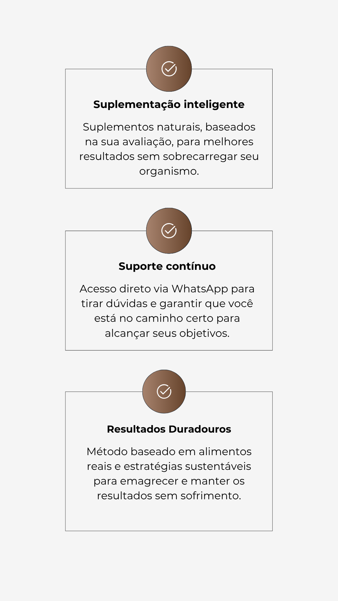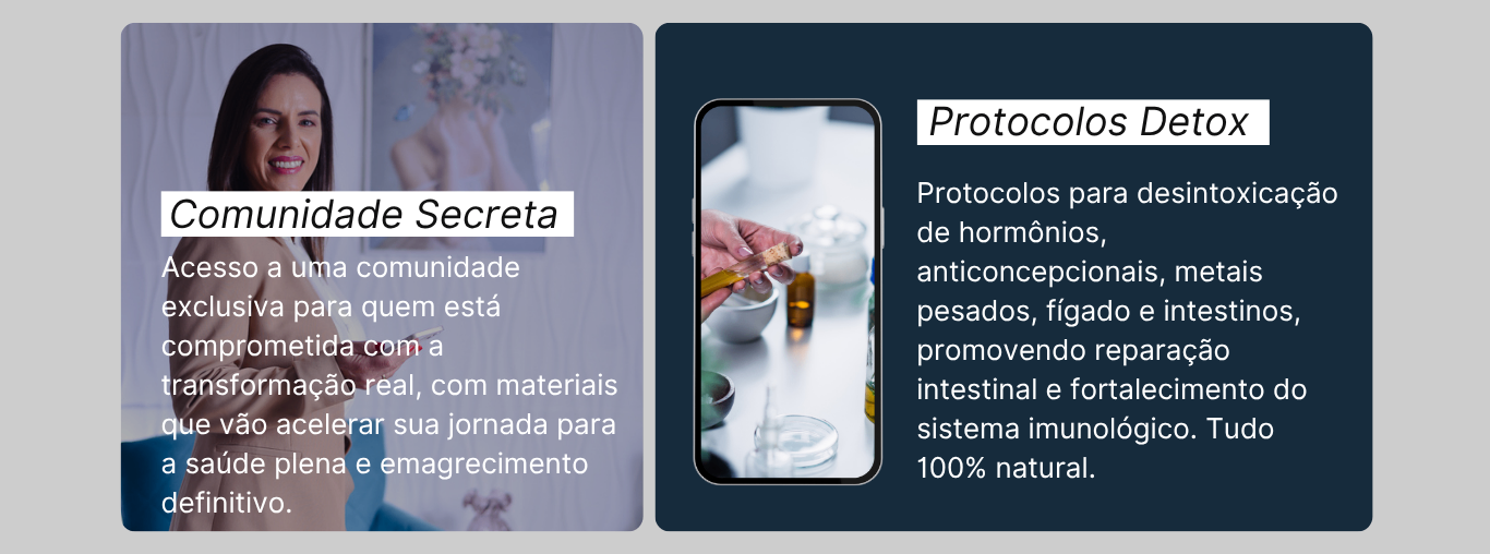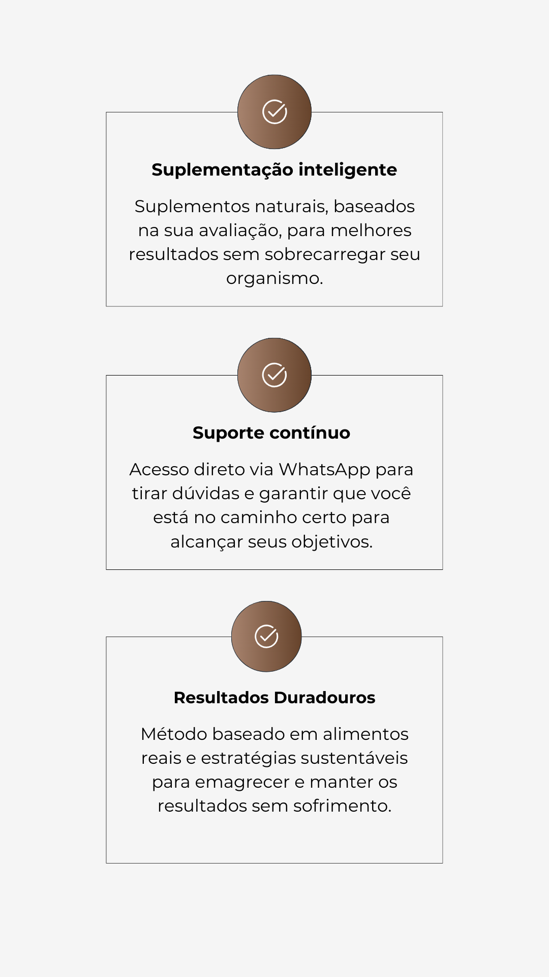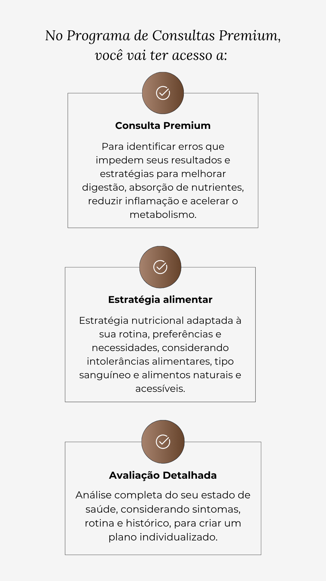Você já gastou muito mais com suplementos aleatórios, consultas de 15 minutos e dietas que só te deixaram frustrada. Aqui, o caminho é diferente — com ciência, constância e suporte de verdade.