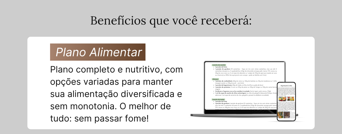 Porque aqui você não recebe uma dieta genérica. Você recebe direção. Um plano estratégico e 100% personalizado, com acompanhamento real e contínuo, focado nos pilares que realmente transformam seu corpo: alimentação, suplementação, hábitos e equilíbrio hormonal.