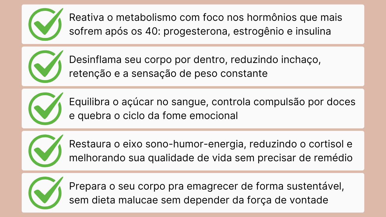 E é exatamente isso que a Dieta Hormonal 40+ vai te mostrar.