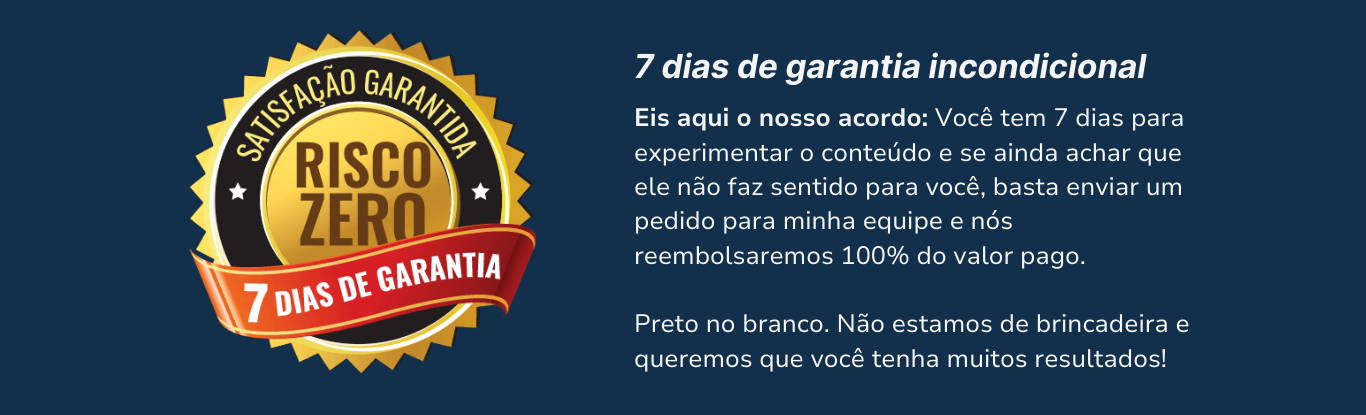 Você poderá optar por: Pix, Conta Hotmart ou Cartão de crédito em até 12 vezes.