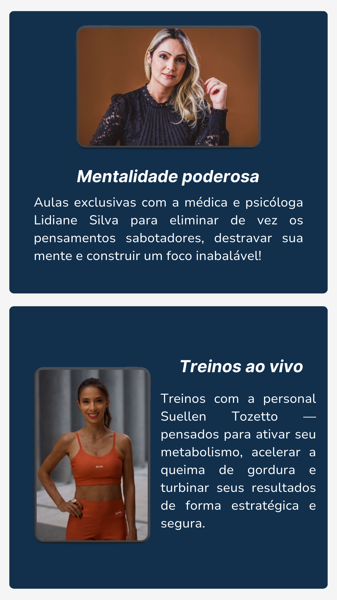 Você terá acesso ao curso por 12 meses a partir da data da compra, podendo assistir às aulas quantas vezes quiser, dentro do seu período de assinatura, de qualquer lugar do mundo. E se quiser continuar aproveitando novos conteúdos e mantendo-se ativa na nossa comunidade secreta, você poderá renovar seu plano e continuar nessa jornada transformadora.