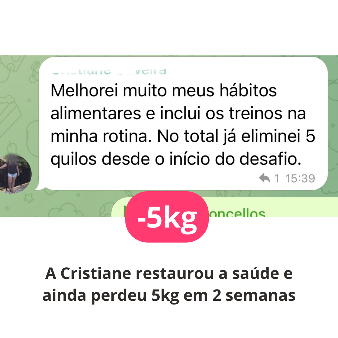 Várias alunas conseguiram reduzir sintomas negativos, restaurar a saúde e emagrecer até 5kg em apenas 2 semanas. Os resultados são 100% possíveis, mas dependem do seu esforço e organismo. Siga à risca o passo a passo do desafio e seja um caso de sucesso também.