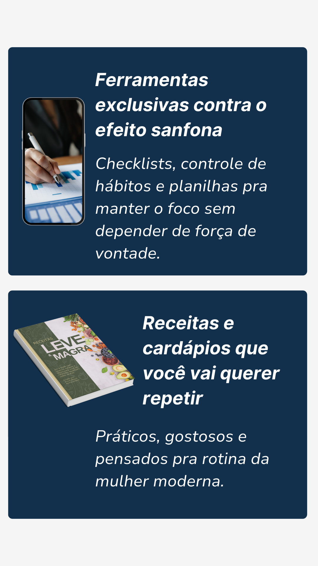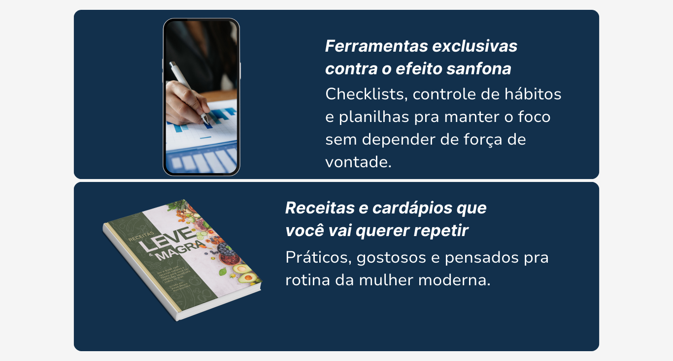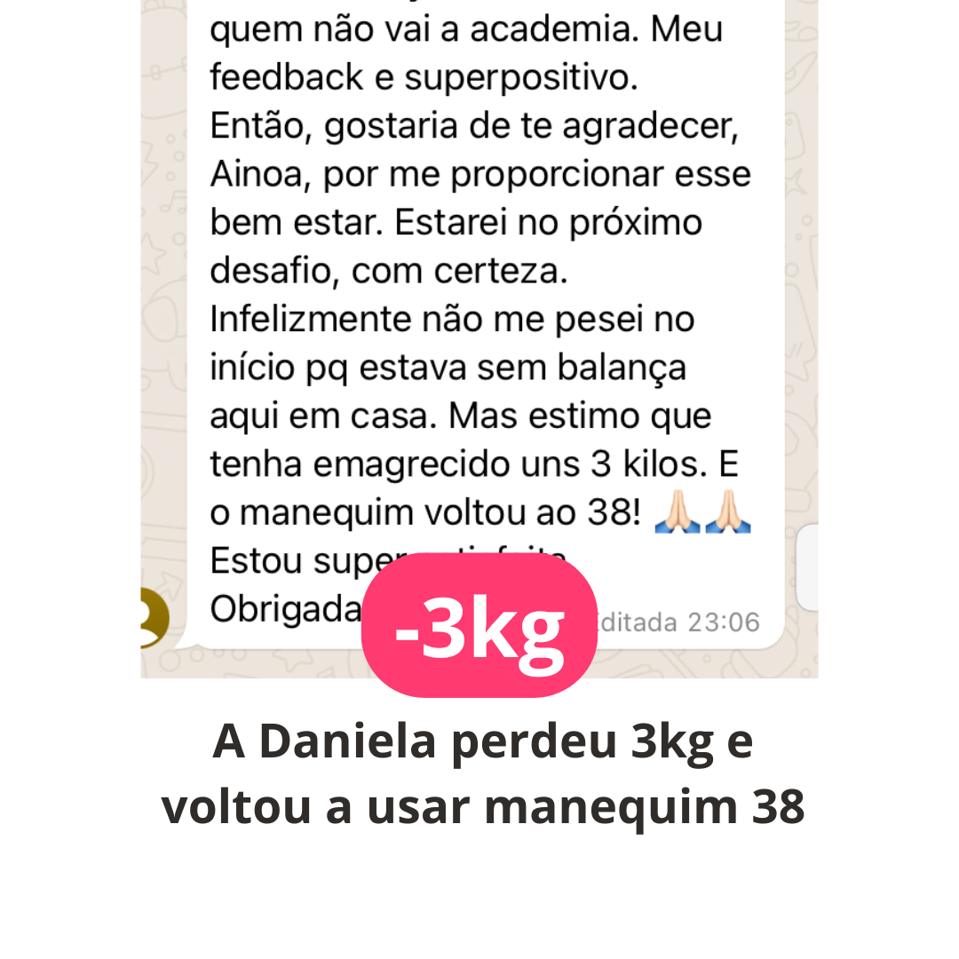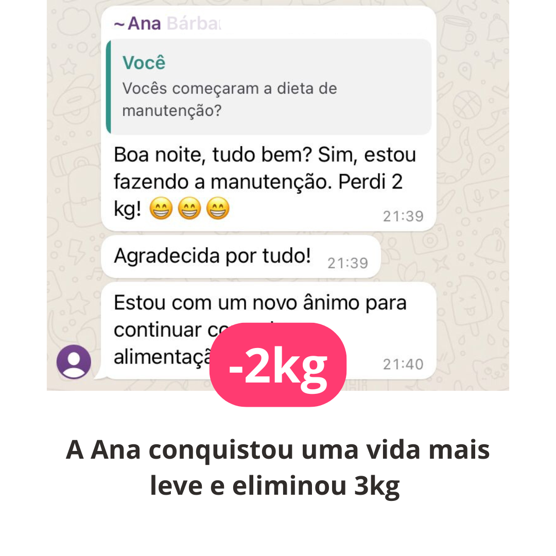 "Seguir o Leve e Magra foi um divisor de águas na minha vida! Em apenas 2 meses, eliminei 3kg e continuo emagrecendo - tudo isso sem passar fome. Resgatei a disposição e energia"