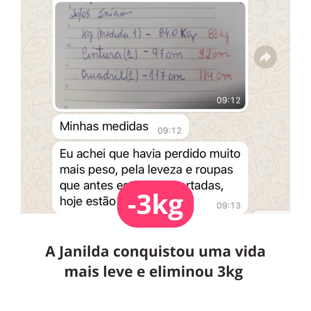 Seguir o Leve e Magra transformou a minha rotina em tempo recorde! Em apenas 2 semanas, eliminei 1,2kg. Além disso, senti uma grande melhora na cognição e aprendi a organizar minha rotina"